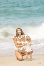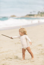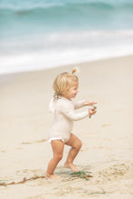 She’s cute, she’s comfy, she’s protective. Inspired by the surfers paradise in Dana Point, The Doheny rashguard features long sleeves and classic neckline to keep your littles covered in the sun. To elevate the design, the back hosts a zipper enclosure with oversized bow, whilst a touch of femininity has been added with our signature ivory ruffles to the leg.