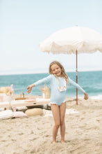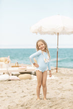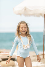 She’s cute, she’s comfy, she’s protective. Inspired by the surfers paradise in Dana Point, The Doheny rashguard features long sleeves and classic neckline to keep your littles covered in the sun. To elevate the design, the back hosts a zipper enclosure with oversized bow, whilst a touch of femininity has been added with our signature ivory ruffles to the leg.